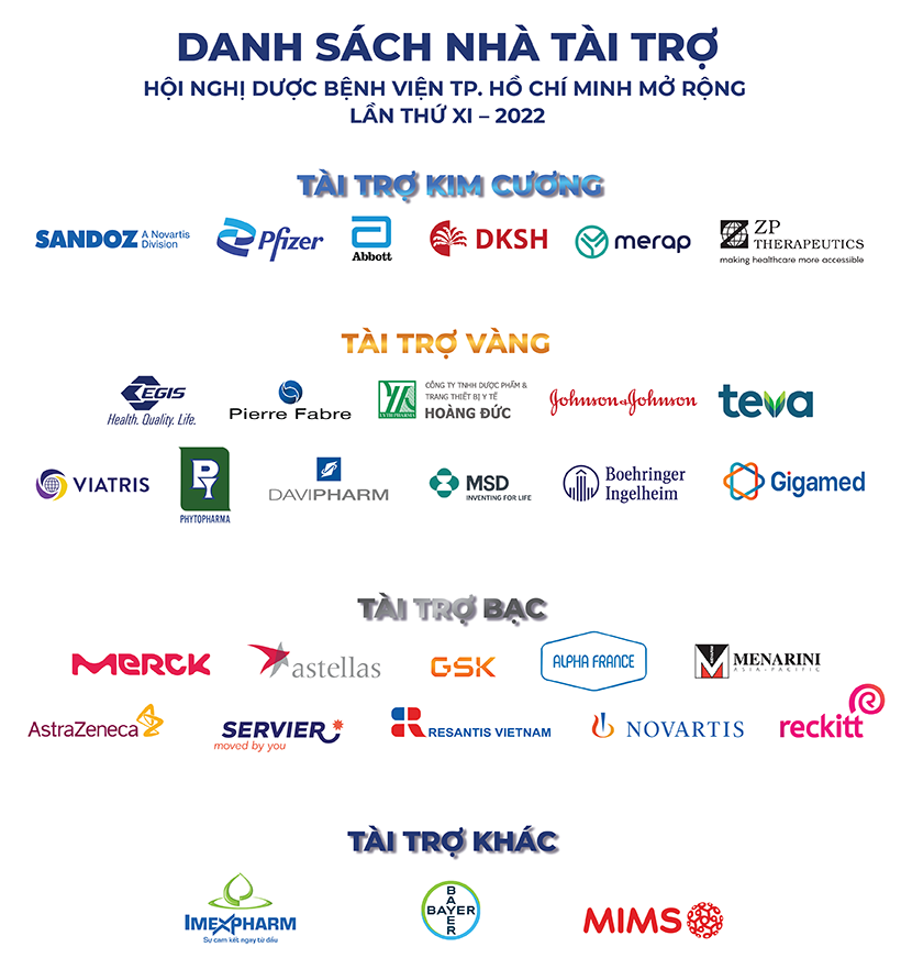 Trước tiên, thay mặt Hội Dược sĩ Bệnh viện TP.HCM chúng tôi xin kính gửi lời cám ơn chân thành đến Quý Công ty, đơn vị đã đồng hành cùng các hoạt động khoa học, tập huấn chuyên môn y dược của Hội trong nhiều năm qua. Tuy nhiên, vì lý do đại dịch Covid-19, trong 2 năm 2020 và 2021, chúng ta không cùng tổ chức được các Hội nghị khoa học.