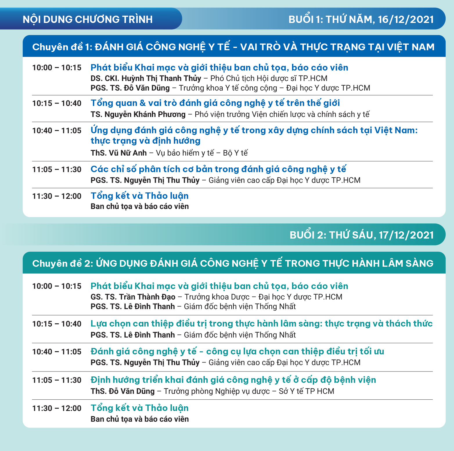 CHƯƠNG TRÌNH HỘI THẢO CHUYÊN ĐỀ