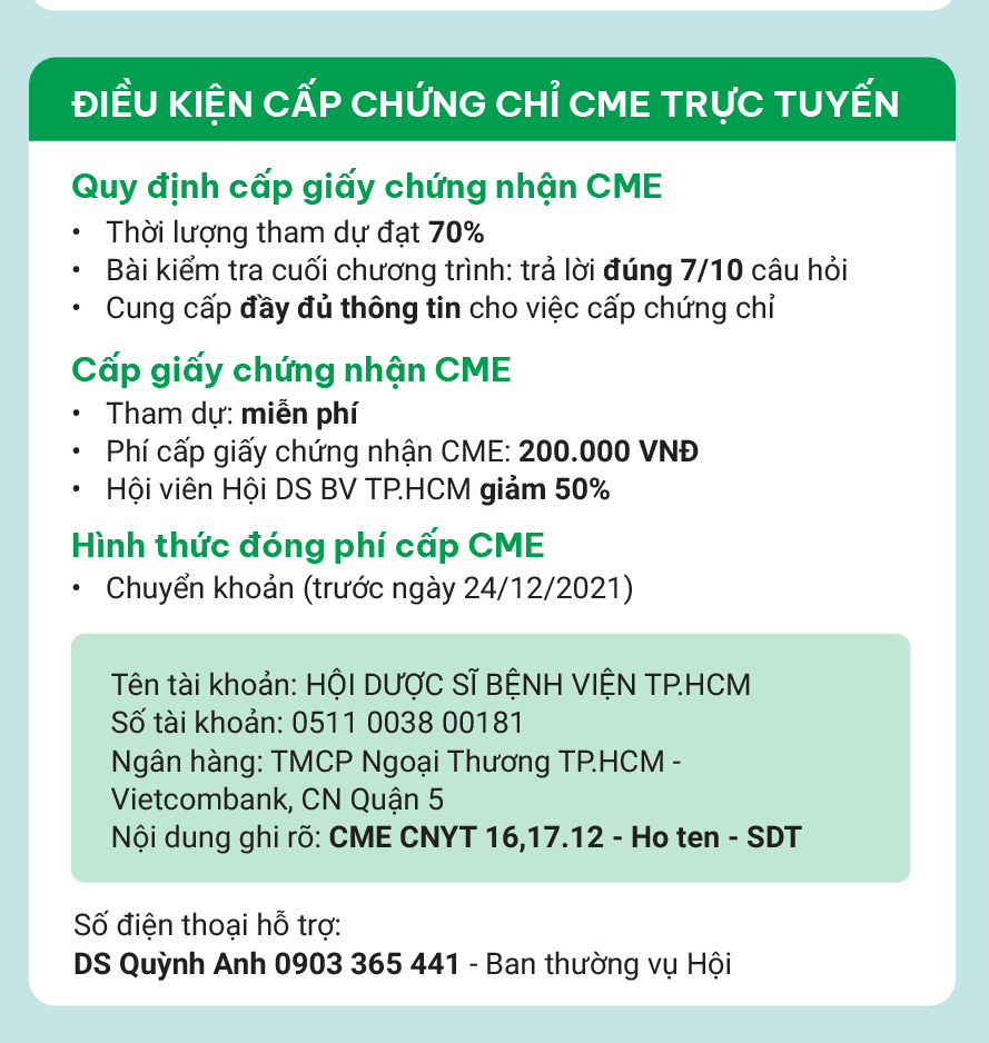 Để nâng cao và cập nhật kiến thức cho cán bộ y tế đồng thời thúc đẩy ứng dụng Đánh giá công nghệ y tế trong thực hành lâm sàng, tạo cơ sở lựa chọn thuốc an toàn, hợp lý, hiệu quả cho cán bộ y tế, Hội Dược sĩ Bệnh viện TP. Hồ Chí Minh tổ chức Hội thảo chuyên đề “Đánh giá công nghệ y tế - công cụ tối ưu trong lựa chọn can thiệp điều trị” vào lúc 10g ngày 16 - 17/12/2021.